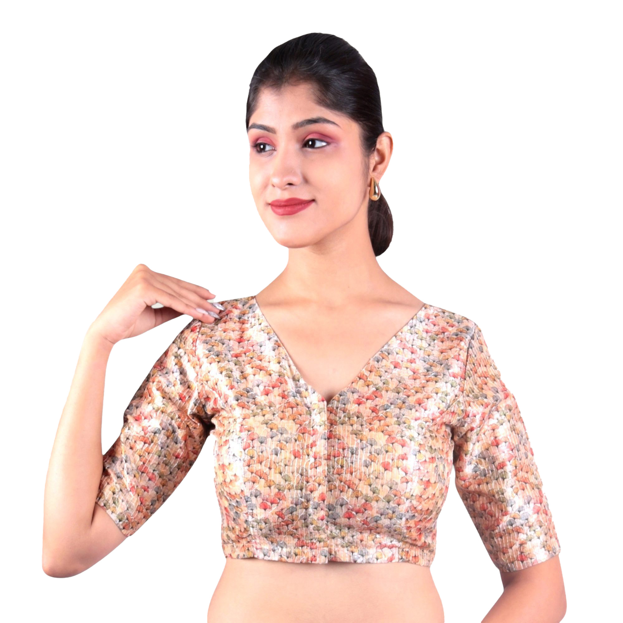 Product Name: Chic Multi-Color Printed V-Neck Blouse | Embroidered Texture Saree Blouse For Women