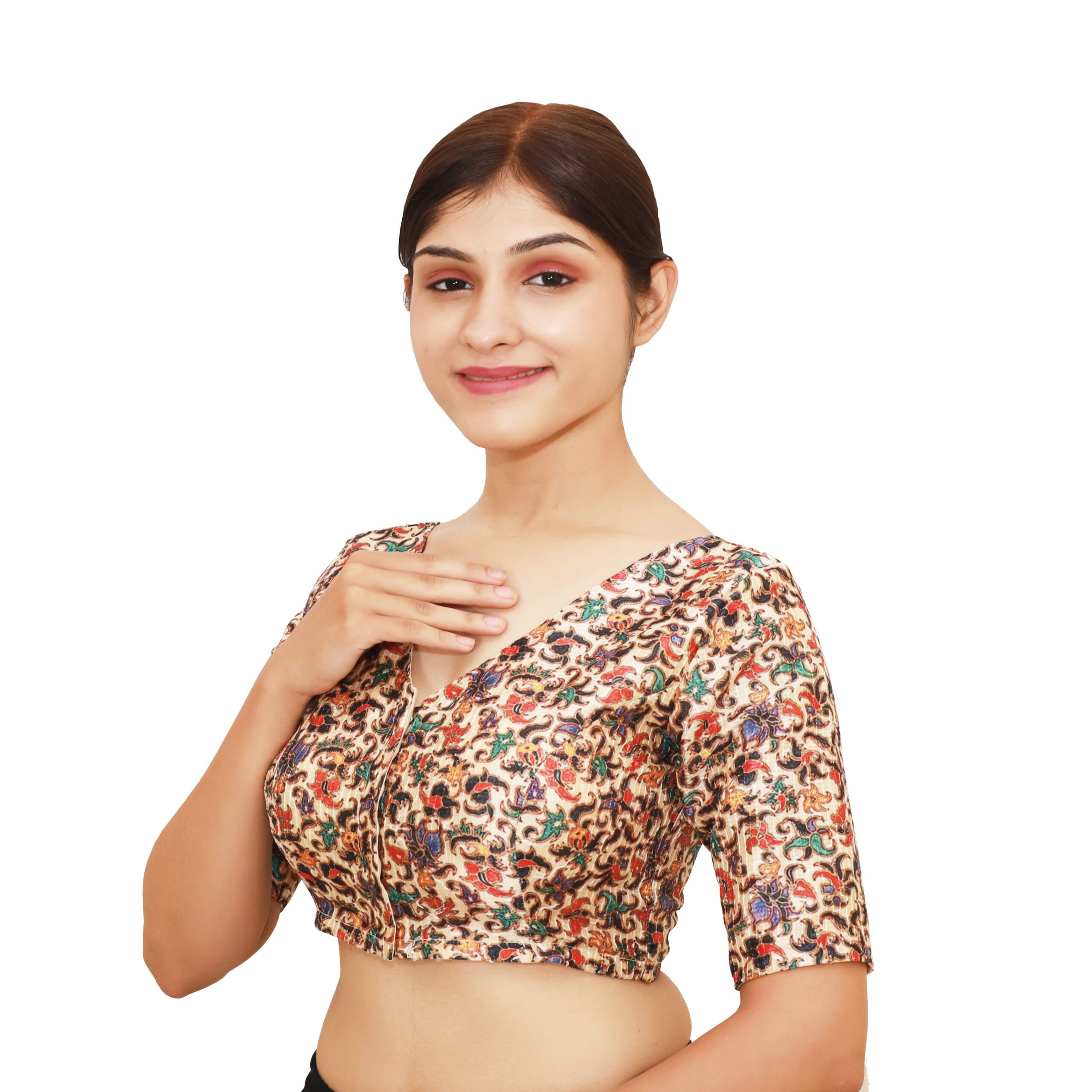 Product Name: Elegant Multi-Print V-Neck Blouse | Embroidered Saree Blouse