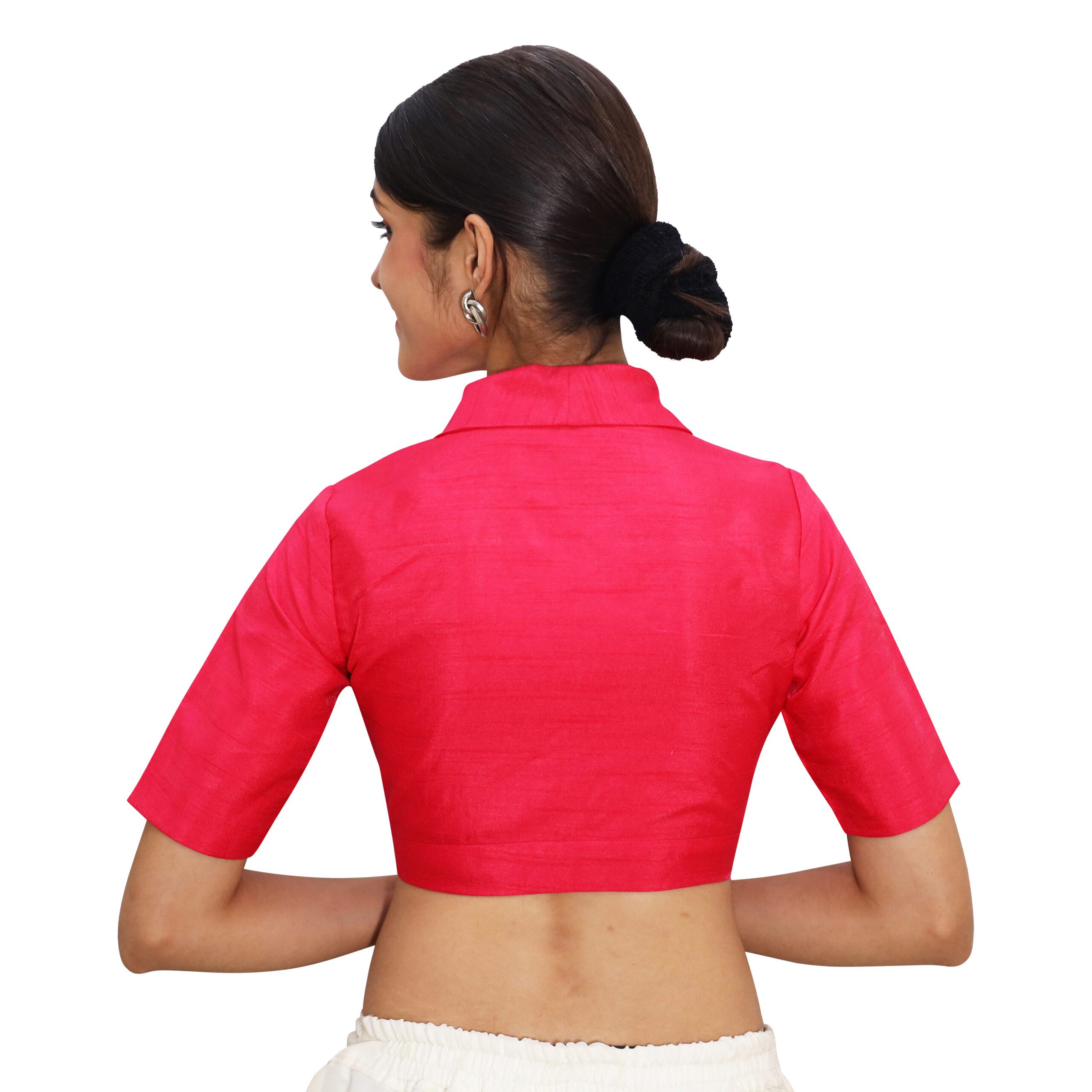 Elegant Rani Pink Collar Neck Blouse | Padded Silk Saree Blouse
